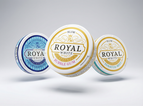 Elegance in every pouch. Royal White elevates the nicotine experience with sophisticated flavors from cappuccino to scotch whisky, gin grapefruit to bubble gum, all delivered in premium all-white format.